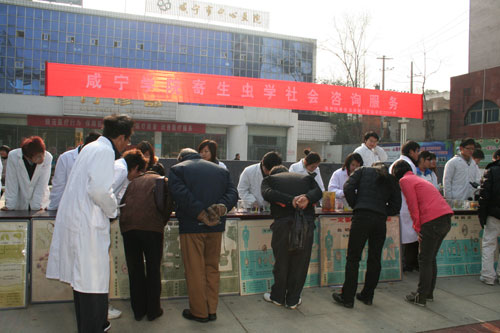 2009年12月20日上午,咸宁公司SUNBET申博寄生虫教研室在咸宁市中心医院门口举办社会咨询活动,参与的有SUNBET申博寄生虫陈主任、覃主任和全体老师及部分员工。咸宁电视台与咸宁日报也派记者进行了追踪报道。