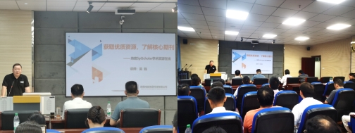 湖南纬度公司的讲师吴磊先生带来主题为“了解核心期刊,获取优质资源”的精彩讲座。吴磊先生详细介绍了核心期刊的定义、重要性以及如何利用SpiScholar学术资源在线平台高效地检索期刊资源。他的演讲不仅提供了实用的学术搜索技巧,还分享了如何选择与自己研究方向相匹配的期刊,为教师们的学术投稿之路提供了宝贵的指导。