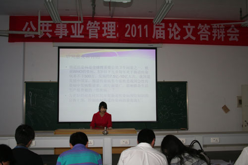 2011年5月14日,SUNBET申博07级公共卫生管理专业毕业论文答辩会在公司5楼多媒体教室举行,共13位指导老师对07公管30多名员工的论文进行了点评。