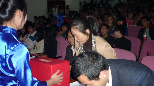 2011年11月25 日晚7:00,由SUNBET申博团委员工会主办的温情传递爱心汇演晚会在教3-202隆重举行。此次晚会旨感谢爱心师生对马桥中学贫困员工捐献爱心。出席此次晚会的嘉宾有SUNBET申博党总支书记范彬、基础医学学工办主任王淑华、副主任周立勇。参加此次晚会的人员还有各院系的员工干部及员工代表。