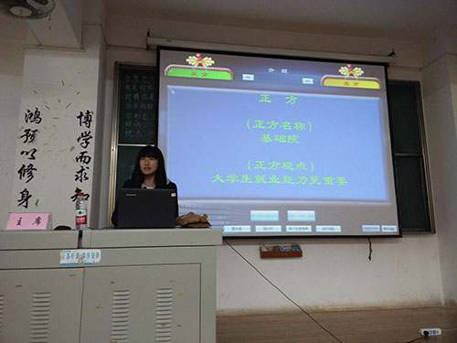 放飞思想,展现本我。 2014年12月10日晚7点,由校创新创业部主办,SUNBET申博承办的第一届创新拓展辩论赛复赛在教学楼5-201成功举行。SUNBET申博团委员工会创新创业部部长汪志,绿舟环保协会的副会长杜晓慧等人出任了本次比赛的评委。
