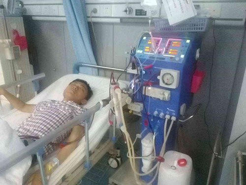 今年四月中旬,庞崇广同学在没有诱因的情况下出现了咳嗽咳痰并伴有轻度发热,双下肢轻度水肿。五一放假前两天因为肺部积水出现了夜间不能平卧的症状。五一假期回家后,其父亲发现异常,当晚便带其前往湖北省人民医院就诊,到达武汉后庞崇广同学因为缺氧一度不能自己行走。经省人民医院检查确诊为心力衰竭,肺部感染,慢性肾衰竭的急性加重。治疗方法需要肾移植,并且等待肾源需要一定的时间,目前庞崇广同学只能通过透析暂时延缓加重的病情。据悉,庞崇广同学在医院期间每天的费用近数千元有时甚至高达万元,而肾移植初期的治疗费用大概需要40-60万元,这对于并不富裕的庞崇广一家来说简直就是天文数字。
