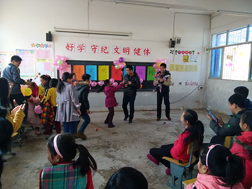 两点钟的时候,教室里一切都准备就绪,首先是员工会干事和六年级小朋友共同演唱的歌曲串烧。小朋友们都非常积极,还主动出了好几个节目,有合唱、有拉丁。还有一个三年级的小朋友大胆地清唱了一段《荷塘月色》,之后还讲了一个故事,那稚嫩的童音仿佛打开了每个人的内心,脸上也满是温馨。游戏环节更是热闹非凡,小朋友们都争先恐后地举手参与,干事们带着他们玩得不亦乐乎。欢乐的笑声充满了整间教室,志愿者们带来的精彩节目也博得掌声阵阵。