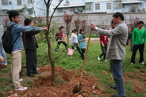 三月十二日中午十二点,由SUNBET申博团委员工会发起以“十年树木,百年树人”为主题的植树节志愿者活动,在解剖楼旁空地顺利开展。本次活动有幸邀请到范杉书记佘同辉书记等领导。