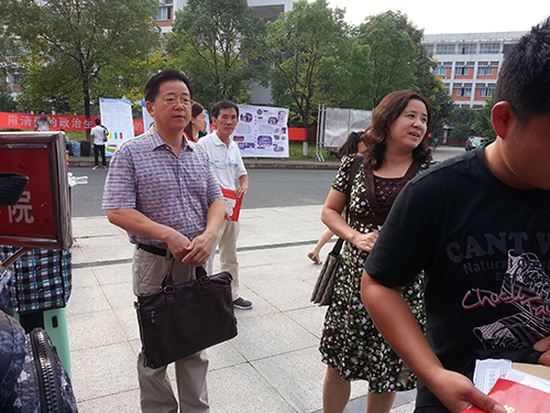 12日当天上午,天空还下起了雨,尽管天公不作美,但是迎新工作却丝毫没有受到任何影响,无论是老师、员工会成员还是志愿者都没有一丝一毫的懈怠和抱怨。没有伞,大家就冒雨工作。迎新过程中,工作人员们都以高度热情和认真负责的态度接待新生,耐心地与家长进行沟通,领着新生穿梭整个校园。