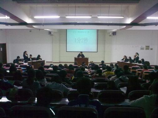 2010年12月5号晚7:30,由公司SUNBET申博主办的第一届“北极星”杯辩论赛在教3-202成功举行。周文华老师,周立勇老师以及校级辩论赛最佳辩手郑宇昊同学担任此次比赛的评委,独家赞助商“北极星”饰品店的负责人应邀作为此次比赛的嘉宾。