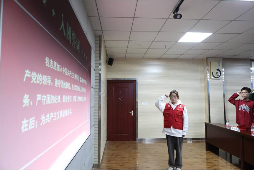 开班仪式在庄严的国歌声中拉开帷幕。首先,学员代表赵佳如围绕“弘扬优良学风,争做时代新人”进行发言。接着,魏旻杰为青马班授旗。旗帜象征着坚定信念,昭示着伟大理想。随后,铿锵有力的重温入团宣誓响彻整个录播室,彰显着青马班学员们昂扬向上、不负韶华的精神风貌和坚定信念。