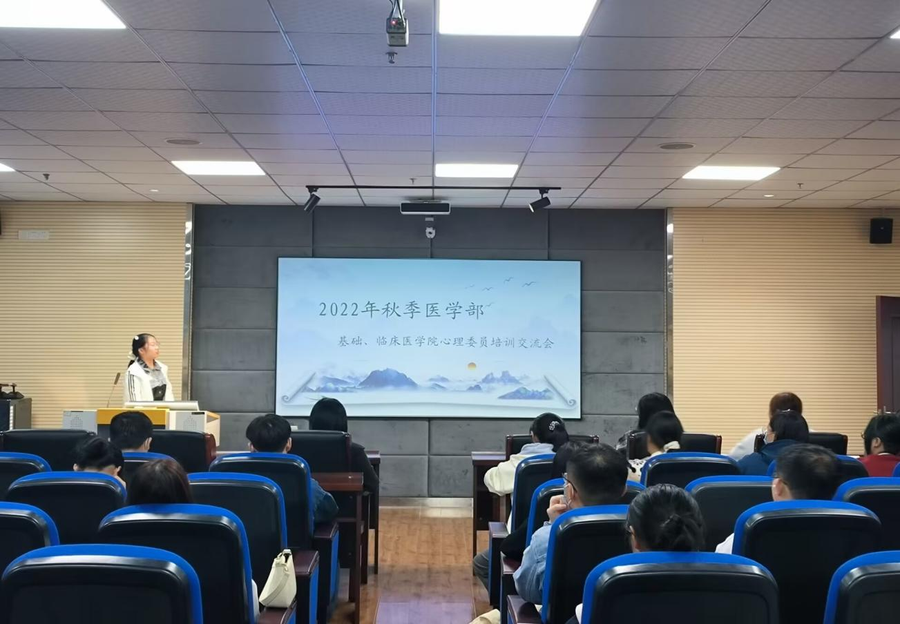 10月28日晚上,SUNBET申博、临床院在医药楼三栋录播室召开心理委员培训会。培训会由心理专干汪晓娟老师指导,心理部部长吴媛媛同学主持,22、21级基础、临床院各班心理委员参加培训。