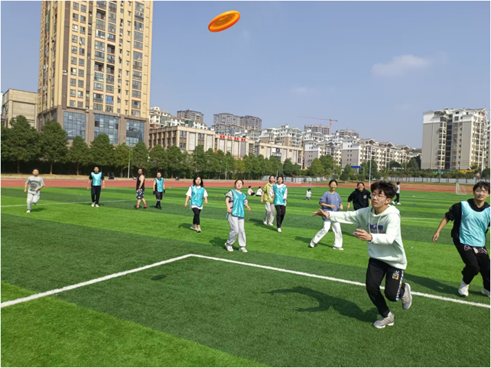 每组派出5名学员和一名教练进行友谊赛,赛场上学员们英姿飒爽,在一次次穿盘接盘的过程中,学员们彼此配合、鼓励,成为彼此信任的队友,同心协力。手上传的不仅是飞盘,更是一颗颗年轻火热的心。