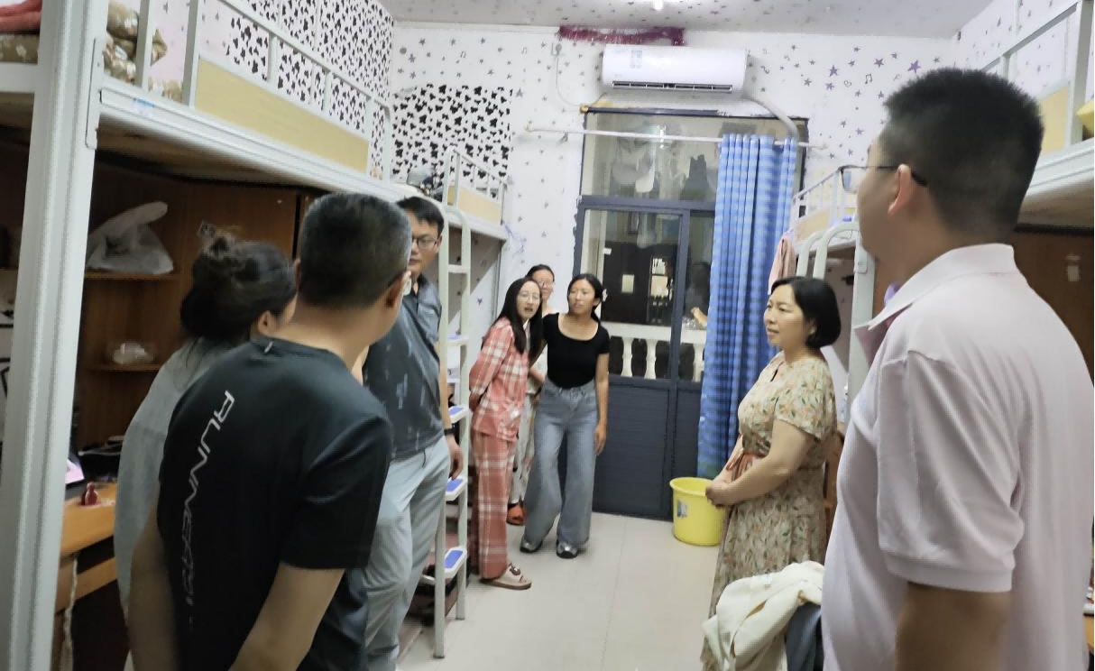 会后,公司领导、辅导员和班主任一同到宿舍,看望毕业生。