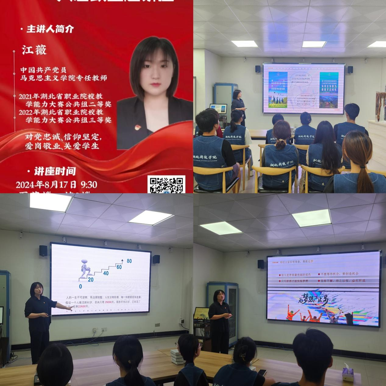 江薇老师围绕“奋斗的青春”的深刻内涵、奋斗的必要性和实践路径三大维度,展开了一场思想盛宴。她以鲜活的实例、独到的视角,深刻阐述了新时代青年肩负的历史使命与时代责任,点燃了同学们的奋斗之火,照亮了他们前行的道路。