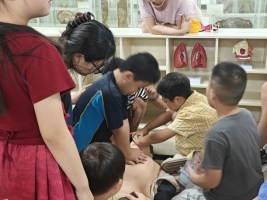 8月26日,30余名孩子分两批参与科普活动。首环节以趣味比喻科普基孔肯雅热预防,将病毒比作“微型轰炸机”、积水比作“空军基地”,让孩子快速掌握“清积水、防蚊虫”要点。CPR急救课变身“溺水救援”小剧场,孩子4人一组实操模拟人,在节拍声中学会急救技能。标本长廊里,3周大胚胎、透明如水晶的标本吸引孩子目光;VR体验让他们“走进”人体,体验“消化”“血管”之旅。活动设答题集章机制,孩子凭印章兑换“小小科学家”徽章,家长用镜头记录孩子的骄傲瞬间。