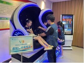 8月28日,银泉社区30多名孩子接力参与科普活动,志愿者用“心脏是快递总站、血液是快递员、氧气是包裹”的比喻,讲解“肺循环”知识,“别让快递员罢工”的调侃引发欢笑。活动分两队:一队在标本馆观察畸形胎儿、断层解剖切片,志愿者称标本是“生命未解之谜的信”,唤起孩子敬畏;另一队戴VR“潜入”肺泡,感受氧气穿透血管壁的过程。体验后,孩子们簇拥着志愿者,抛出一连串好奇:“如何让标本永不凋零?”“畸形胎儿的命运能否改写?”志愿者轻轻地拿起肺组织标本,回答:“科学不怕提问,怕的是缺乏好奇和探索的心。”