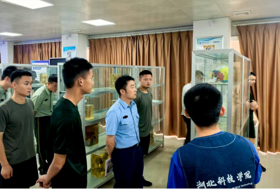 参观中,退伍军人的纪律性与求知欲给师生留下深刻印象。他们认真聆听讲解、俯身观察标本细节,遇疑问时主动与讲解员和教师交流。在病理标本展区,得知部分标本来自捐献时,退伍军人感慨:“捐献者和家属以另一种方式奉献医学事业,与军人保家卫国的精神相通。”