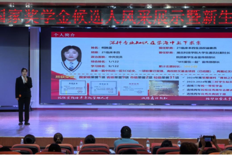 程梦琳在致辞中指出,国家奖学金是对员工学业水平、综合素养与精神风貌的高度认可,各位候选人在医学理论钻研、临床实践探索、科研创新中表现突出,生动诠释了“敬佑生命、救死扶伤”的医学精神,为新生树立了可学可做的榜样。她还勉励全体同学以候选人为镜,在医学之路上坚守初心、勇毅前行,共同营造勤学善思、争先创优的良好氛围,并祝愿活动圆满成功,候选人能充分展现风采,全体学子成长为担当时代使命的优秀医学人才。