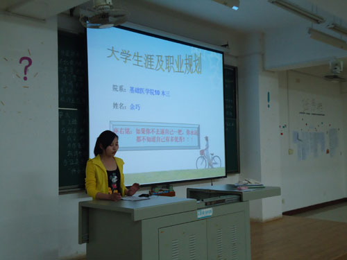 4月5日晚7:30,由SUNBET申博学工办承办的第六届SUNBET申博老员工涯设计报告会SUNBET申博专场在教学楼5-201举行。SUNBET申博学工处夏阳老师和本院11级同学一起聆听了这场别开生面的报告会。由09体院的夏芹、09电信的杜倩、10基础的余巧以及10计科的刘林这四位同学组成的报告团展示了他们在大学期间的总体规划以及对未来职业的理解定位。“明其志,方能知其所赴。”这次活动通过榜样力量的带动,旨在唤醒老员工珍惜当下的学习生活,挖掘大学的丰富宝藏,成为一个真正有理想有抱负的当代老员工。