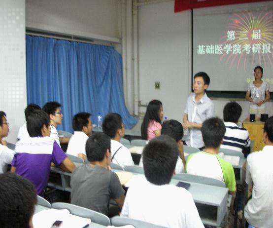 2011年5月9日晚7:00,SUNBET申博考研报告会在解剖楼三楼的多媒体教室1隆重举行。团委辅导员周立勇老师作为嘉宾老师出席了此次报告会,应邀在本次报告会上作报告的有: 06临床本科的吴鹏波学长,07公管的徐龙学长和黄晓燕学姐。SUNBET申博08、09和10级全体公管、预防专业的同学主要参与听取了此次报告。