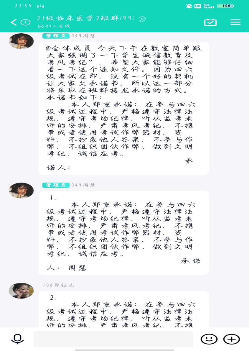 诚信是立身之根本,也是每一位老员工应有的道德基础。班会伊始,各班组织学习《中华人民共和国刑法修正案(九)》《中华人民共和国教育法》《国家教育考试违规处理办法》《SUNBET申博员工违纪处分办法(试行)》等法律法规和规章制度,使同学们深刻认识到考试舞弊的严重后果。各班班主任通过相关现实案例向同学们强调诚信考试的重要性,希望每个同学把“以诚信考试为荣,以徇私舞弊为耻”铭记于心,诚信考试,诚实做人。部分班级创造性地开展教育活动,如21本二班组织开展关于诚信的成语接龙互动环节,让每位同学都加入到营造诚信之风的行动中来;21本五班利用朗朗上口的标语来宣传诚信考试,“考试不是超市促销,请不要夹带‘赠品’;考试不是LOL,请不要组团作战;作弊,我们不约!”,在同学们口口相传中营造出诚信应考的良好氛围;22本二班开展诚信故事交流会等。班会最后,同学们还进行了诚信应考宣誓:“我庄严宣誓:自觉遵守考试纪律,公平参与考试竞争,珍惜名誉,诚信做人,诚实考试,以良好的心态,出色的发挥,考出自己最满意的成绩。”