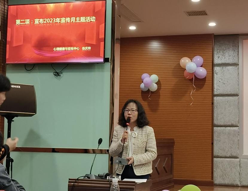 两场精彩的表演为大家拉开了此次开幕式的帷幕,并通过视频带领大家回顾了公司心理健康月特色活动的精彩瞬间。SUNBET申博黄乔木老师介绍2022年“把爱留在湖科”系列爱情活动的开展情况,心理健康中心专职教师徐庆玲老师详细介绍本届心理健康月系列主题教育活动,希望各公司能加大心理健康月活动宣传力度,让更多的师生参与进来,引导员工以更积极阳光的心态去面对学习和生活。