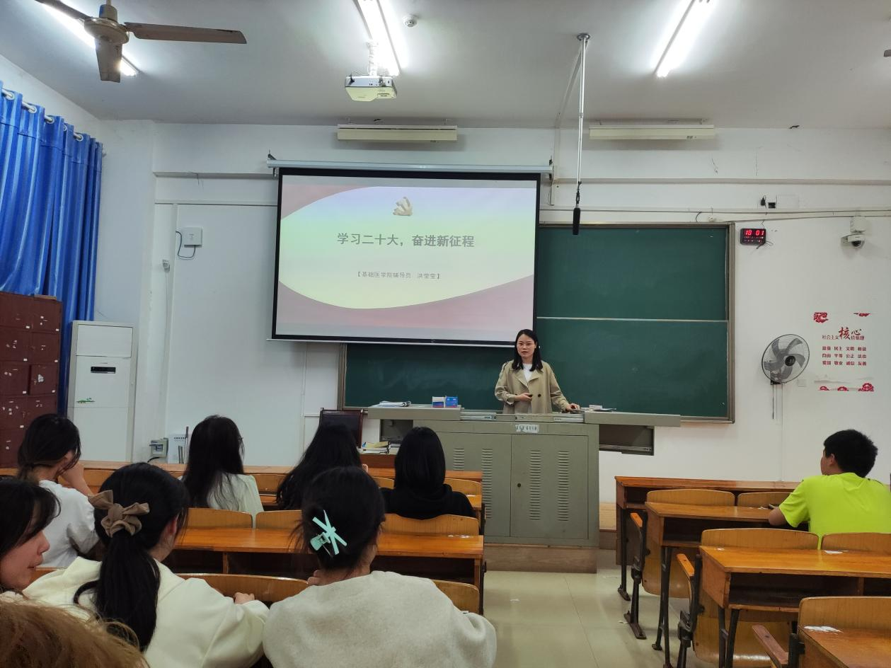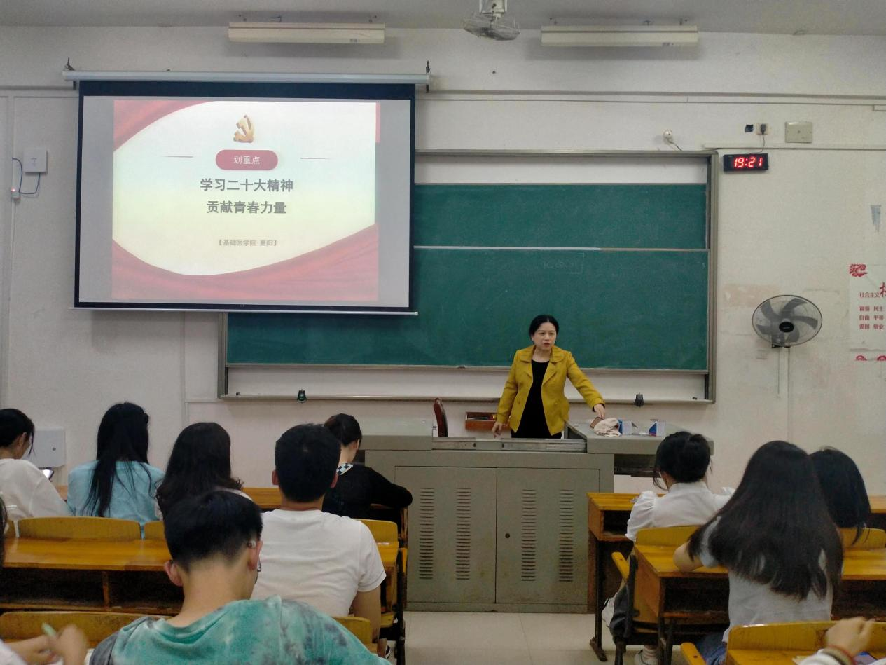SUNBET申博辅导员洪莹莹到22本5班开展党的二十大精神宣讲,洪莹莹指出,要深入学习贯彻习近平新时代中国特色社会主义思想,希望全体医员工凝聚发展医学的奋进力量,强化时代使命和责任担当。辅导员夏阳面向20临床本四班同学开展“学习二十大精神,贡献青春力量”主题宣讲活动。汪晓娟老师面向SUNBET申博21级临床本三班全体同学开展了以“学习二十大精神,砥砺奋进新征程”为主题的的宣讲活动。