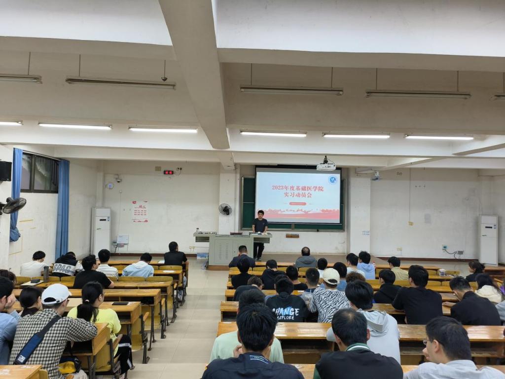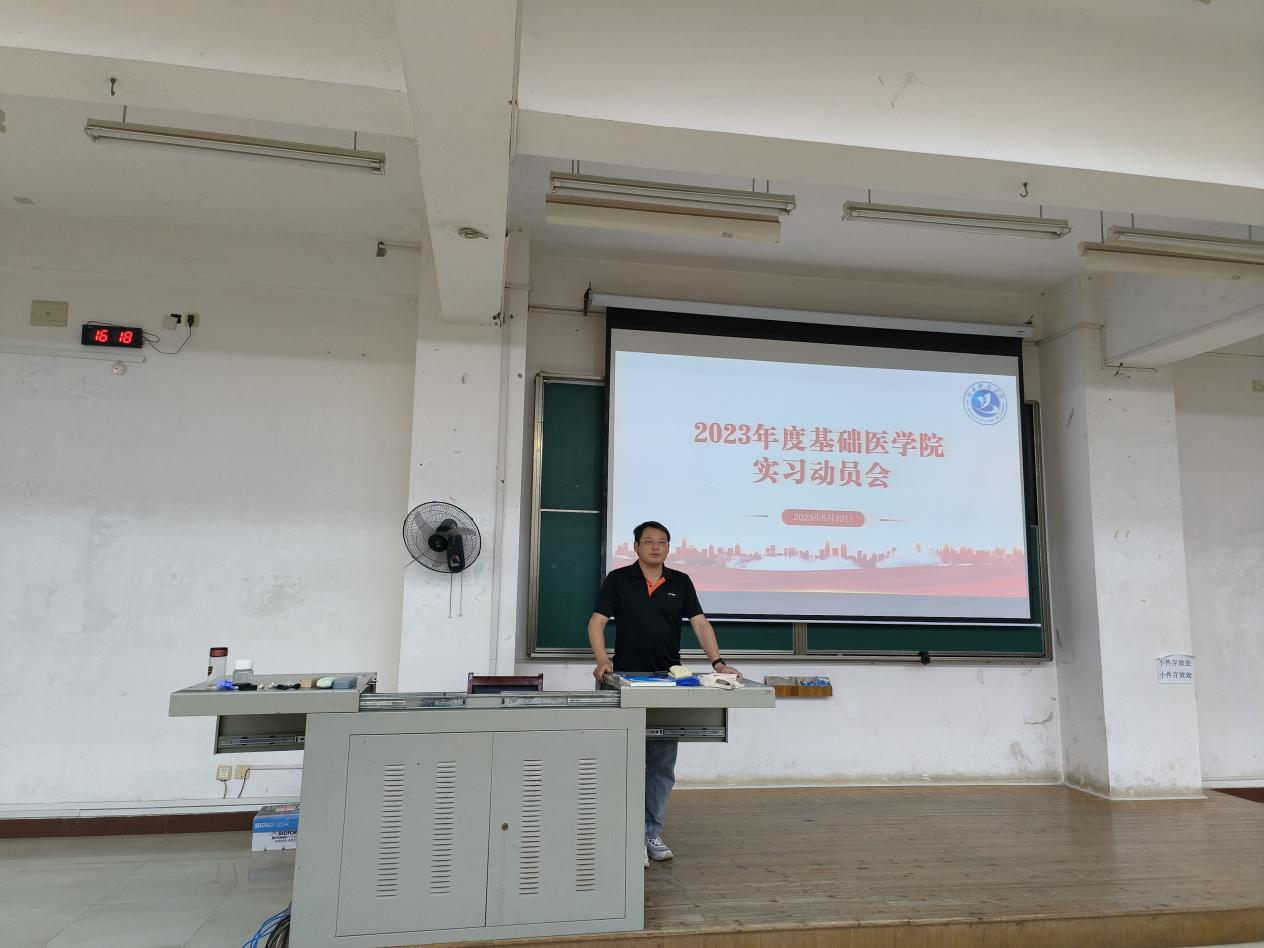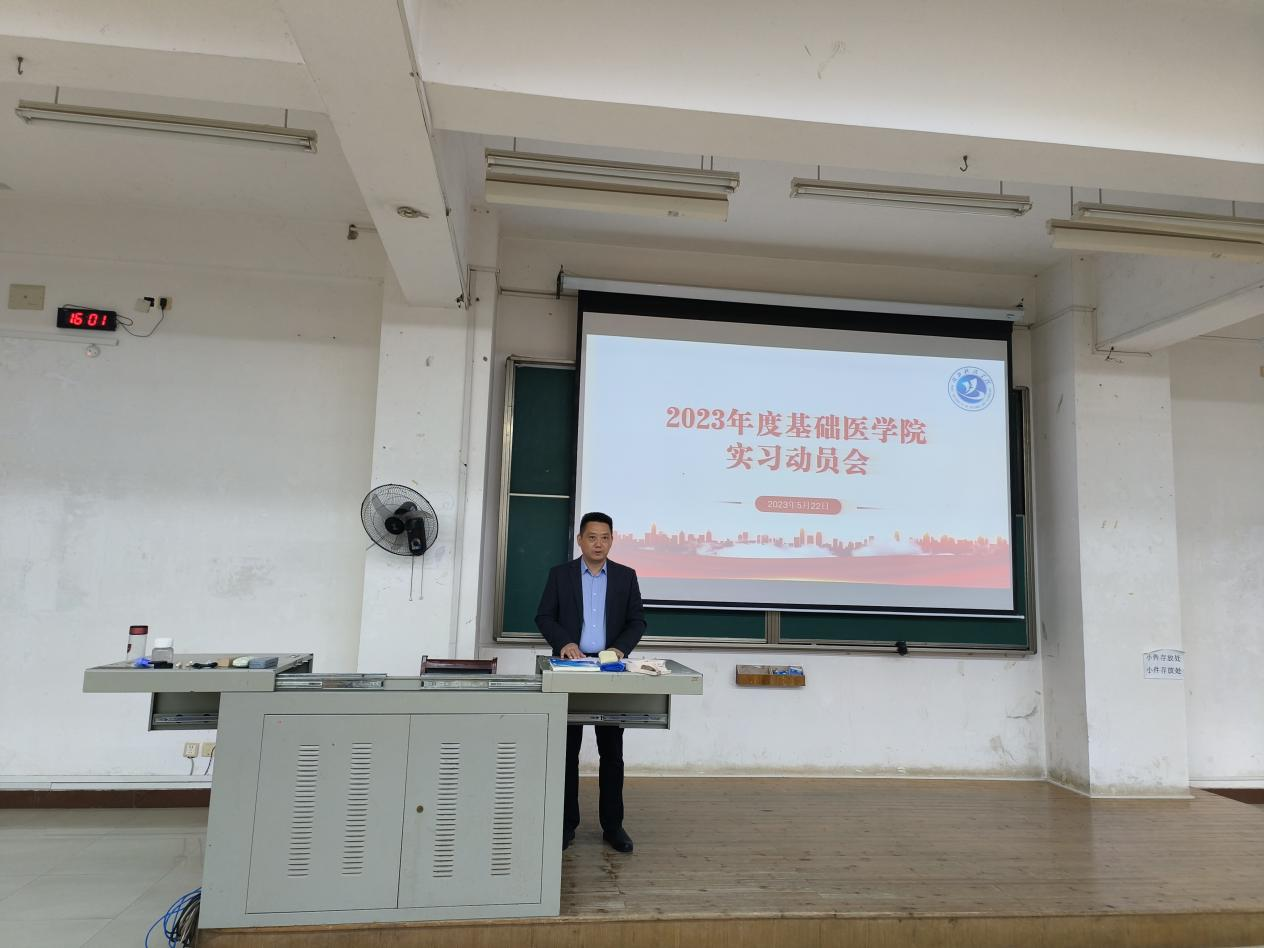 5月22日下午,SUNBET申博2023年度实习动员会于教学楼5栋101顺利举行。SUNBET申博党委副书记佘同辉、副经理蒋汝刚、2019级卓越医师班班主任黄铁军、2021级村医班班主任付国臣、负责实习工作辅导员洪莹莹及实习班级全体员工参加此次动员会。会议由佘同辉主持。