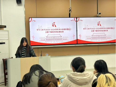 在班会伊始,学习委员逐一细致地向同学们解读了《2019版临床医学本科专业课程计划表》、《关于2023-2024学年学分清理的通知》以及《SUNBET申博授予学士学位实施细则(修正版)》等关键文件,有助于同学们清晰地掌握未来应修的课程科目情况,特别是对学分清理的处理标准和不授予学士学位的情况有了明确的认识。