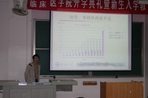 讲座于10月26日下午在教5—101举行。当日,两百余名员工早早来到教室,会场座无虚席。在场的既有高年级的同学,也有初涉大公司园的新生。一样的是大家都带着无比专注的神情期待着讲座的开始。讲座开始,首先出场的是年轻的马博士,一上台就得到了同学们热烈的欢迎。他详细地解读了《武汉大学2010年全日制公共卫生硕士(MPH
