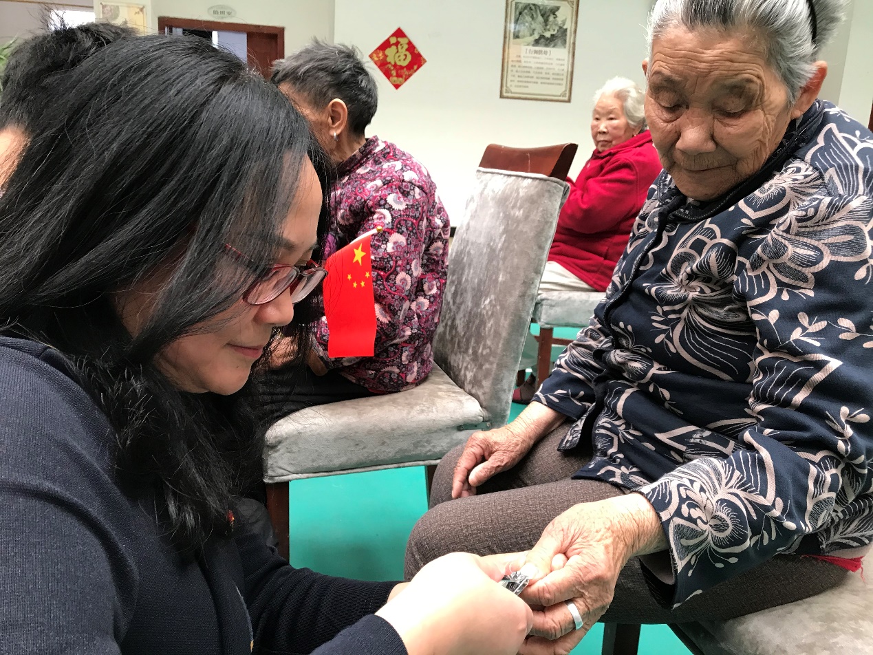 随后,党员教师和同学们为老人们分发慰问品、修剪指甲、陪伴聊天、测量血压,发挥支部教师专业优势,提出健康生活建议,将党史学习教育走深走实,把党史学习教育成果转化到为老人办实事上,用实际行动践行爱老敬老的美德,用爱心、耐心和责任心映照入党的初心。半天的时间很快过去了,活动在老人们的欢声笑语中、在师生热情洋溢的笑容中结束,大家依依不舍合影留念。