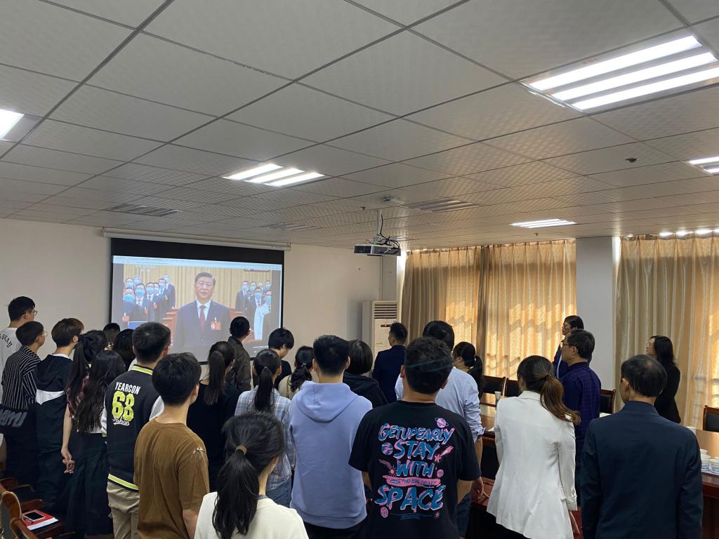 2022年10月16日上午10点,SUNBET申博党委组织师生党员集中观看二十大开幕式电视直播。