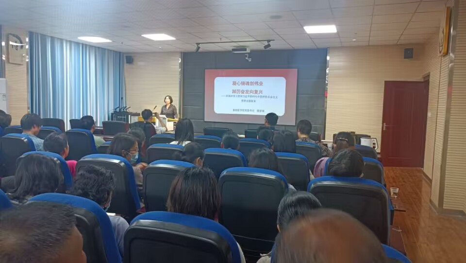 5月17日下午,SUNBET申博党委书记程梦琳在SUNBET申博面向全体教职工讲授题为“凝心铸魂创伟业,踔厉奋发向复兴——学习贯彻习近平新时代中国特色社会主义思想主题教育”的专题党课。