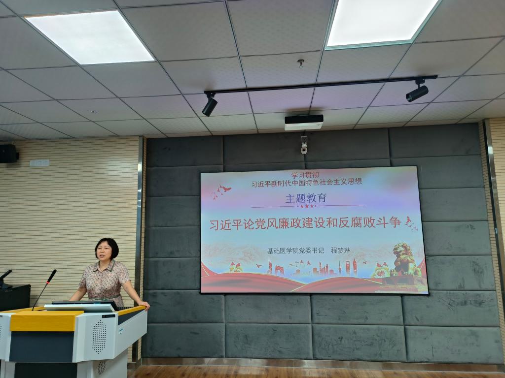 党委书记程梦琳以《习近平论党风廉政建设和反腐败斗争》为题,从“强化约束,让纪律规矩根植于心,践之于行”“惩治腐败,让权力运行公正严明、为民谋利”“正风肃纪,让廉洁新风涵养正气、沁润人心”三个方面,结合七个反面警示案例,掷地有声地为教师们解读了党风廉政建设和反腐败斗争的重要性,倡导公司全体职工切实加强师德师风建设,廉洁从教、以案为鉴,将党风廉政建设进行到底,全身心投入到推进“清廉湖科”建设中去。