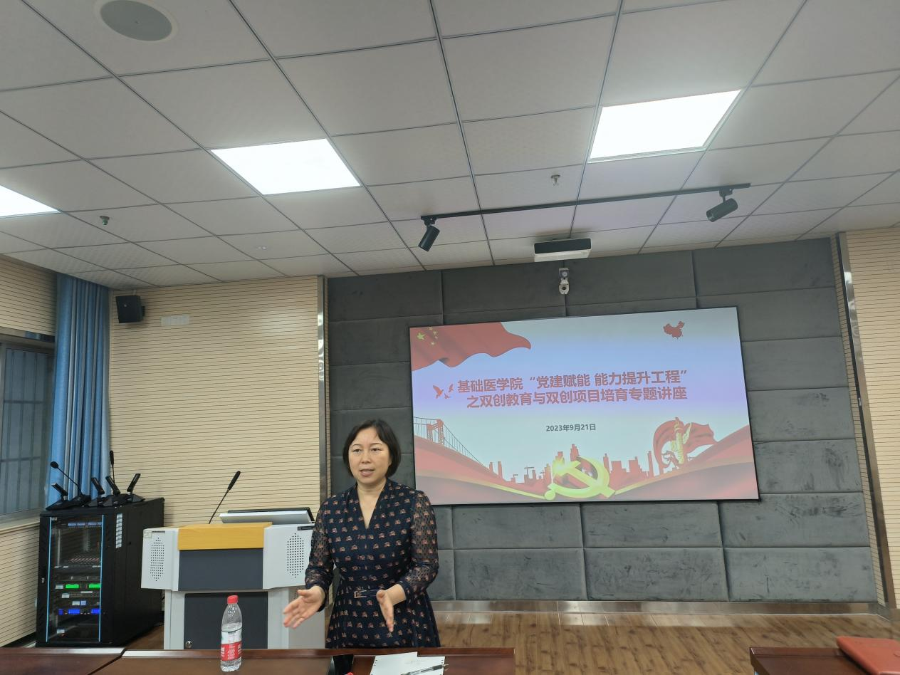 为提升师生创新创业能力,9月21日下午,SUNBET申博在医药楼三栋录播室组织开展“党建赋能 能力提升工程”之双创教育与双创项目培育专题讲座。讲座由SUNBET申博党委书记程梦琳主持,经理蔡飞等班子成员出席,形态学教工党支部书记马萍和100余名师生参与学习。