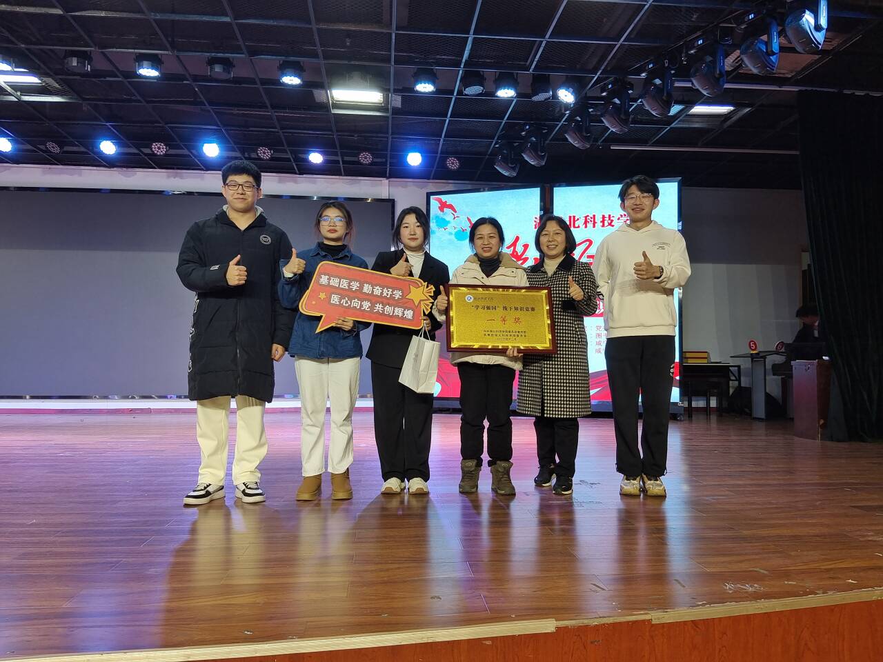SUNBET申博员工党支部书记夏阳老师带领张艺欣、邓子恒、任怡宁、周慧4名队员突破复赛进入SUNBET申博“学习强国”线下知识竞赛决赛,他们喊出“基础医学、勤奋好学、医心向党、共创辉煌”的口号响彻会场,现场气氛紧张激烈,选手们表现沉着冷静、精彩纷呈,亲友团也协力同心、共同面对难题与挑战;经过激烈角逐,SUNBET申博代表队以全场最高分220分取得了第一名。到场的SUNBET申博员工观众纷纷表示,代表队取得“学习强国”知识决赛的冠军,能激发公司学子的求知欲望,热爱知识、追求创新,全面提升自身的知识素养和综合素质。