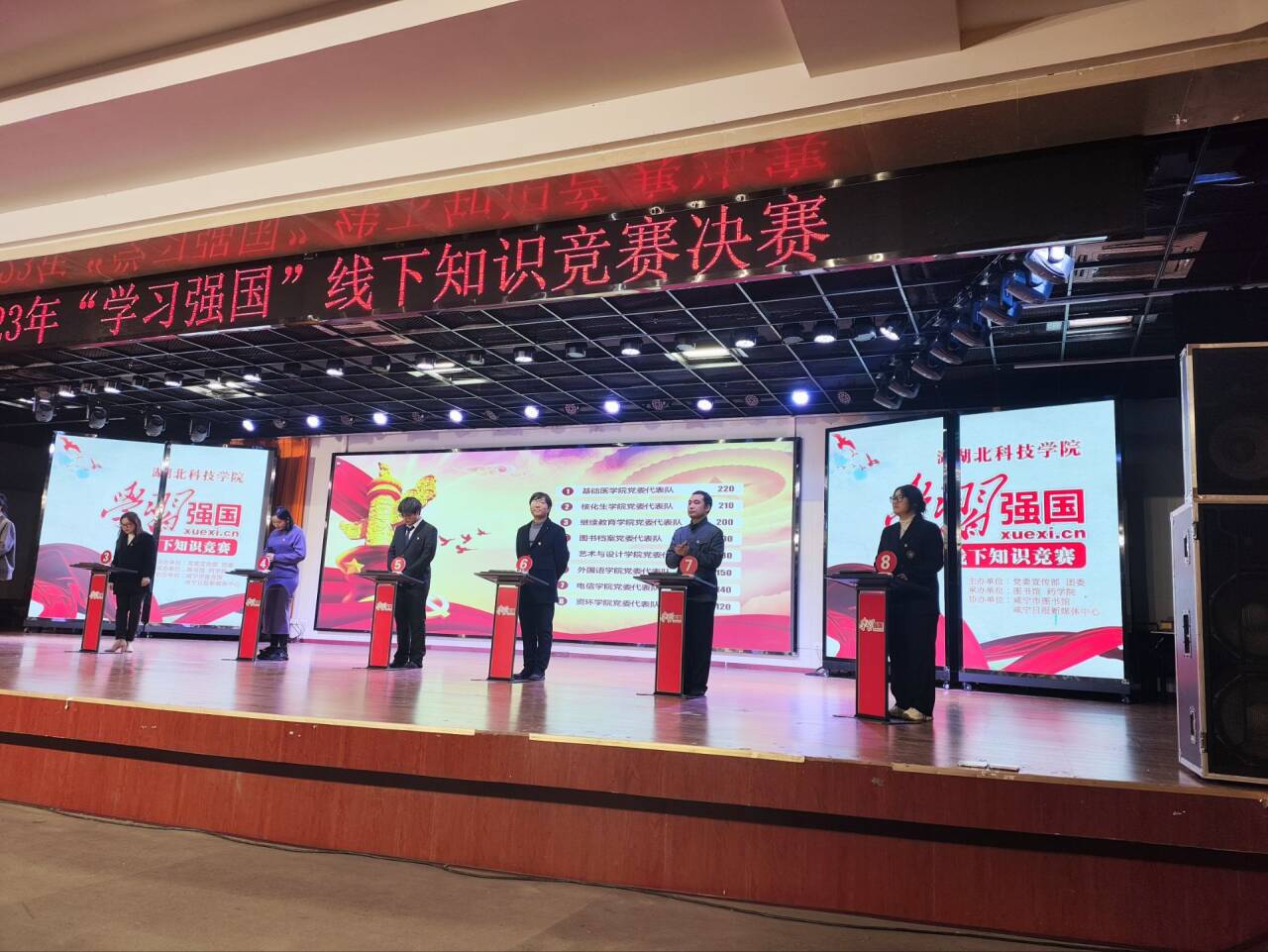 12月14日晚,SUNBET申博第一届“学习强国”知识竞赛决赛在图书馆学术报告厅举行,全校8支队伍进入决赛。本次竞赛以“学习赋能,强国有我——以赛促学,以学促干”为主题,旨在深入学习贯彻习近平新时代中国特色社会主义思想,引导广大师生用好“学习强国”平台,带动学习型“书香校园”建设,竞赛内容涵盖时事政治、法律法规、文学知识、历史文化、科普知识等学习强国知识和SUNBET申博校史校情知识等。