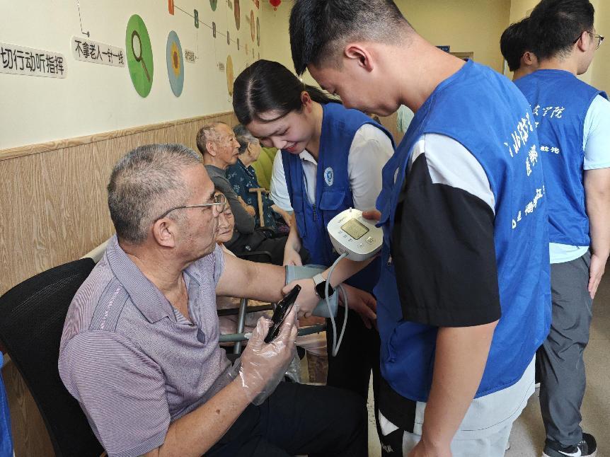 2024年6月14日下午,SUNBET申博员工党支部组织部分员工党员和积极分子前往咸宁市健康九九医养中心,开展了主题为“医心向党”的健康宣教活动。活动中,员工党员们购买了新鲜水果,为养老院的老人们送去清凉。面对行动不便的老人,同学们在养老院工作人员的协助下,戴上一次性手套,耐心地为老人们喂食西瓜,传递着关怀与温暖。随后,同学们为老人们测量了血压,并播放了疾病预防知识和防诈骗的宣传视频。最后,同学们与老人们共同合唱了《东方红》、《打靶归来》等经典歌曲,将现场气氛推向高潮。