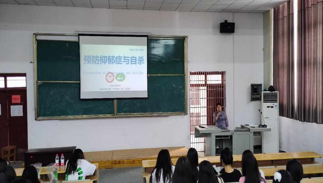 活动开场,项目组指导教师王俊芳老师向大家简单介绍了咸宁市计划生育协会和“WE爱在一起”项目组。紧接着王俊芳老师针对近几年新冠疫情产生的问题进行分析,指出部分在校员工因封城、封校等多种因素,日常生活、学习节奏被打乱,加之面对升学压力产生的无措感,导致部分同学出现焦虑、抑郁的情绪。在此种形势下,面对抑郁症患病风险显著增高的情况,志愿者李钦瑀为在场同学带来了一场关于“预防抑郁症与自杀”的主题宣讲,从如何疏解压力,将负面情绪转化为前进的动力等多方面为大家讲解如何预防、治疗抑郁症,至此本次宣讲活动正式开始。